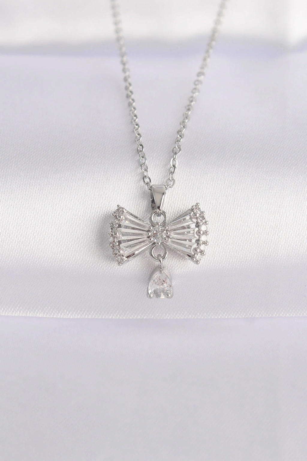 Erb 316L Çelik Zincir Gümüş Renk Zirkon Taşlı Kalp Detay Fiyonk Kolye