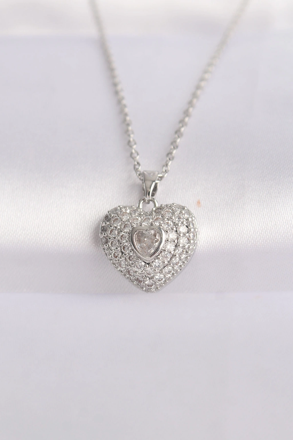 Erb 316L Çelik Zincir Gümüş Renk Zirkon Taşlı Kalp Kolye