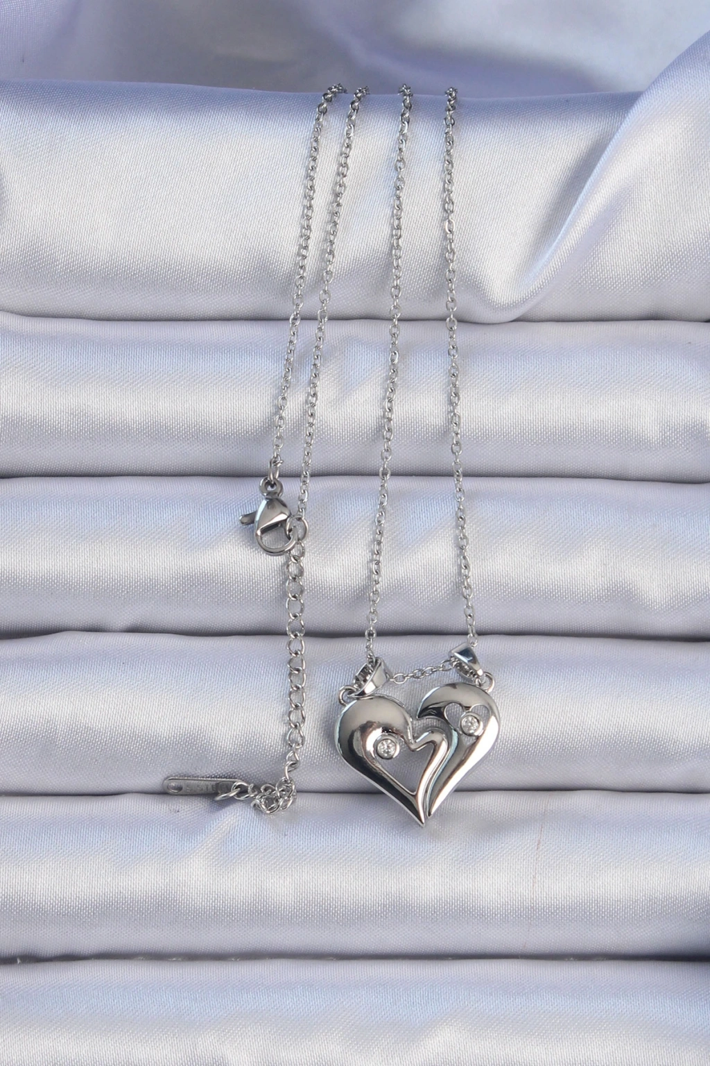 Erb 316L Çelik Zincir Gümüş Renk Zirkon Taşlı Mıknatıslı Kalp Kolye