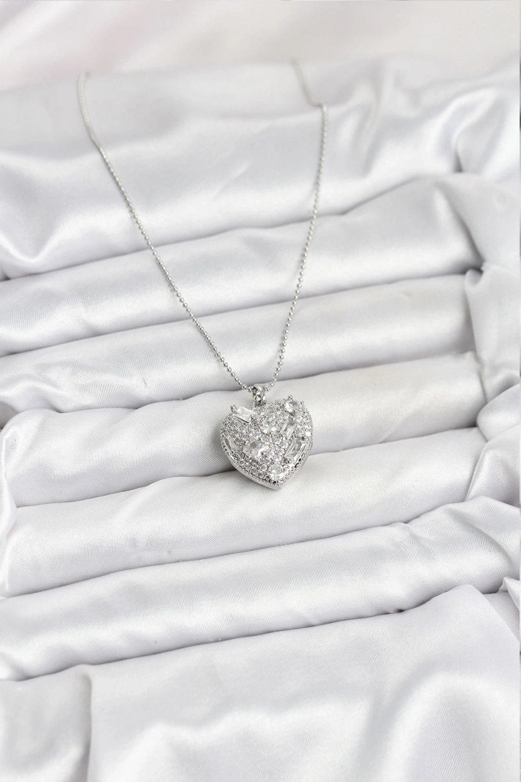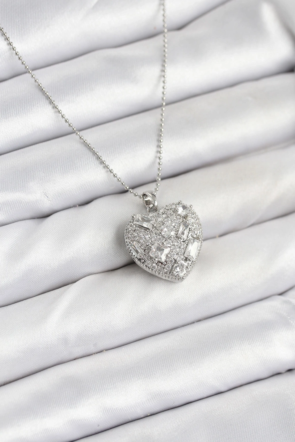 Erb 316L Çelik Zincir Gümüş Zirkon Taşlı Kalpli Kadın Kolye