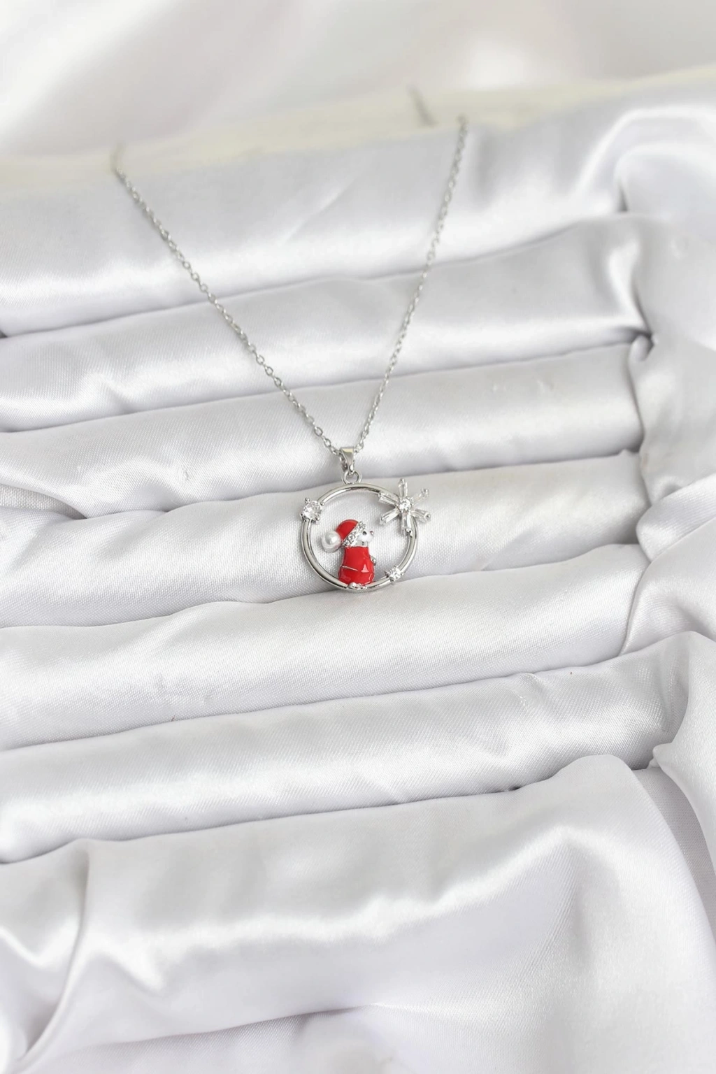 Erb 316L Çelik Zincir Gümüş Zirkon Taşlı Yılbaşı Tema Kadın Kolye