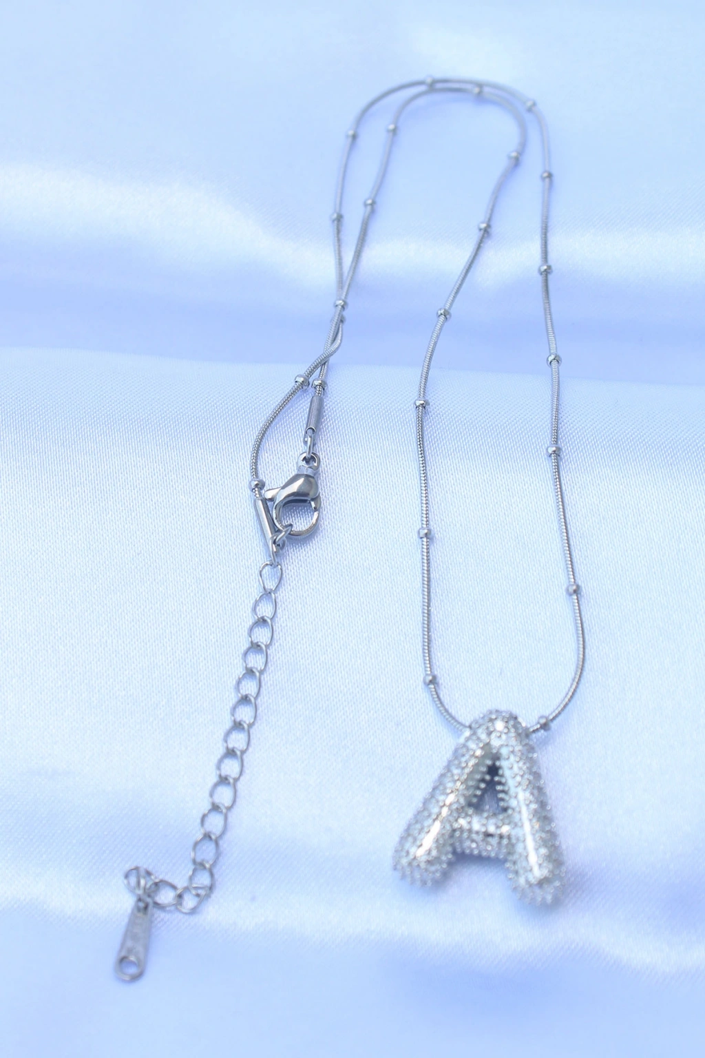 Erb 316L Çelik Zincirli Zirkon Taşlı A Harfli Gümüş Renk Bubble Kolye
