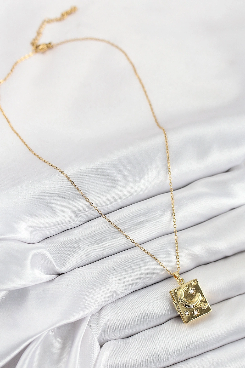Erb 316L Çelik Zirkon Taşlı Açılabilr Kapaklı Kitap Model Gold Renk Kadın Kolye