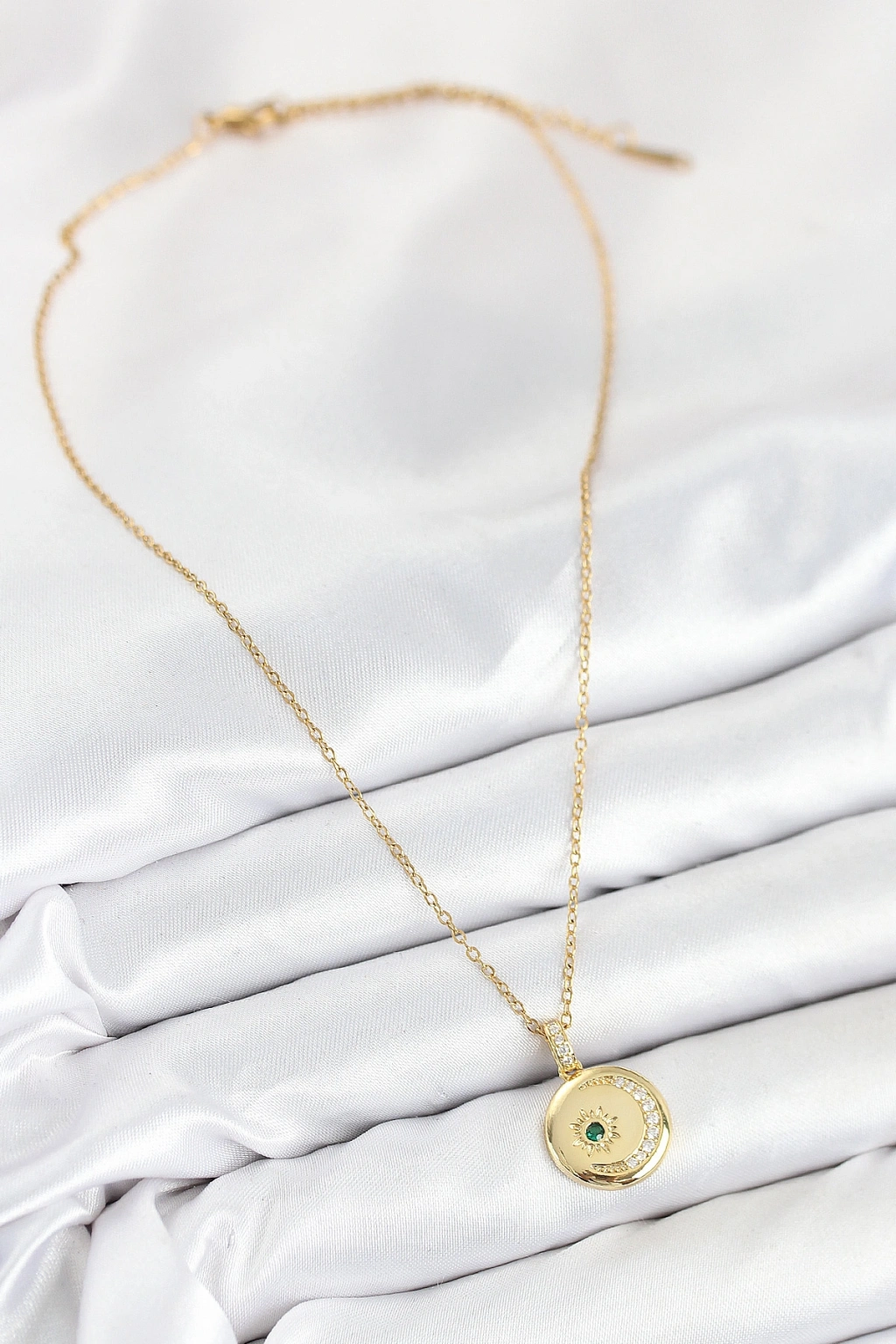 Erb 316L Çelik Zirkon Taşlı Ay Ve Güneş Model Gold Renk Kadın Kolye