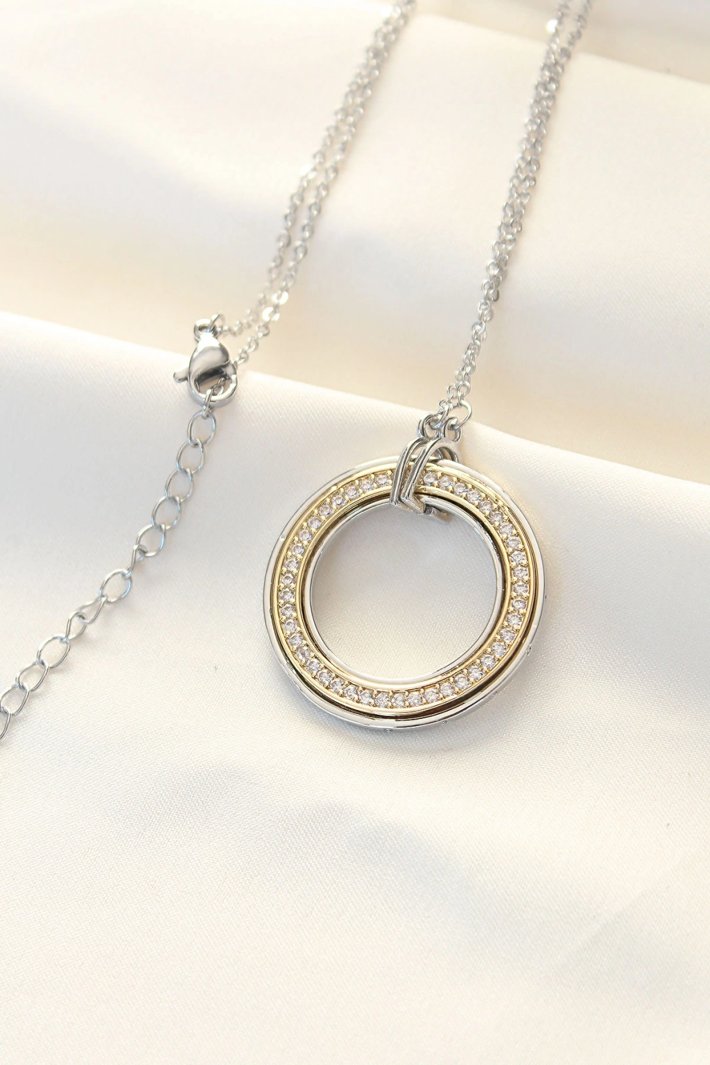 Erb 316L Çelik Zirkon Taşlı Çift Renkli Tifany Kolye