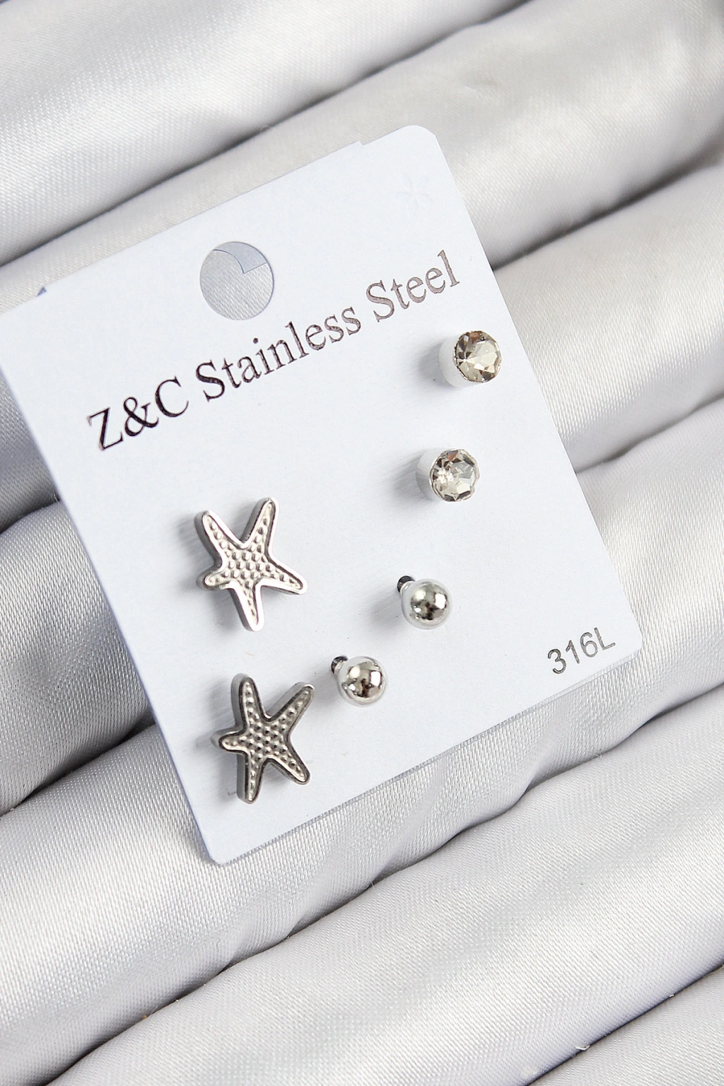 Erb 316L Çelik Zirkon Taşlı Deniz Yıldızı Model Gümüş Renk Kadın Set Küpe