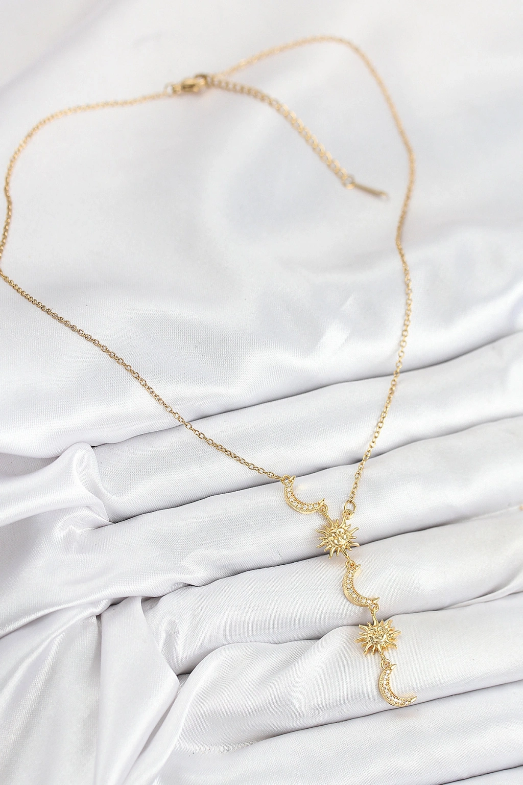 Erb 316L Çelik Zirkon Taşlı Güneş Ve Ay Model Gold Renk Kadın Kolye