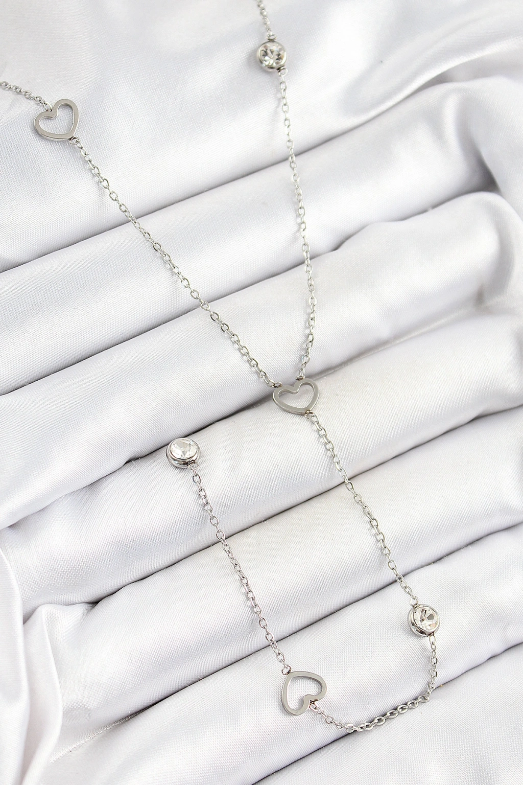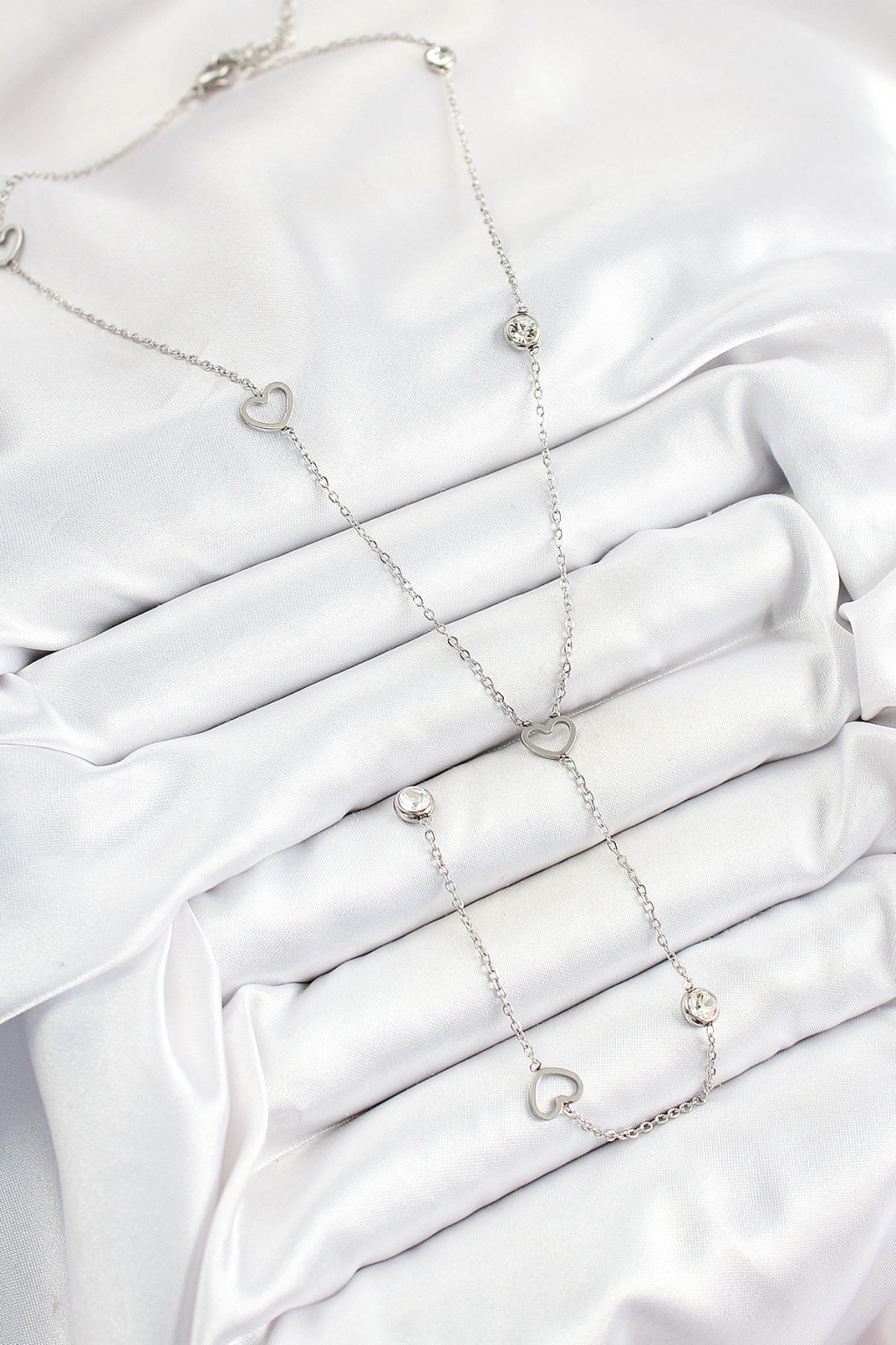 Erb 316L Çelik Zirkon Taşlı Kalp Figürlü Y Model Gümüş Renk Kadın Kolye