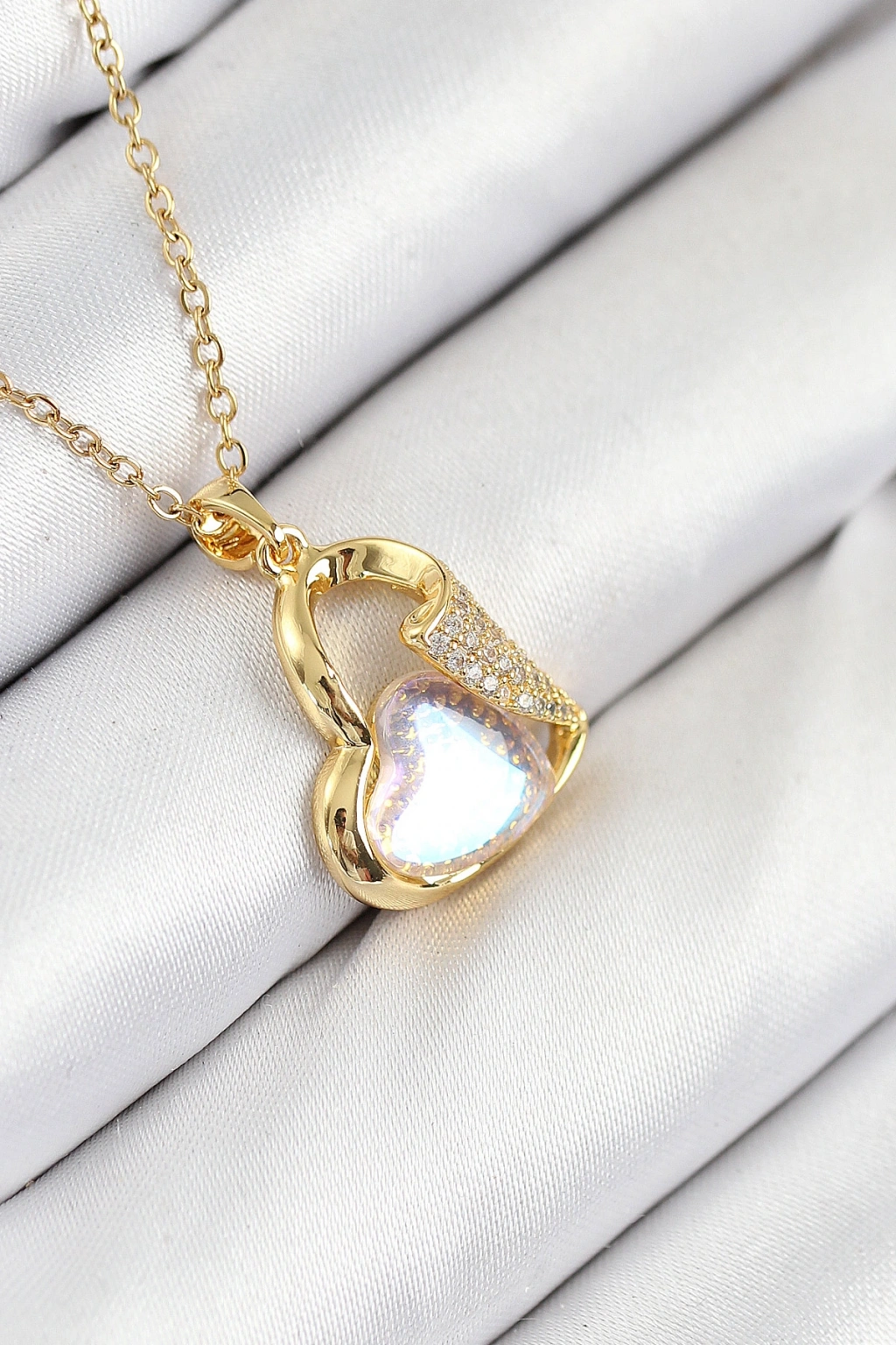 Erb 316L Çelik Zirkon Taşlı Kalp Model Gold Renk Kadın Kolye