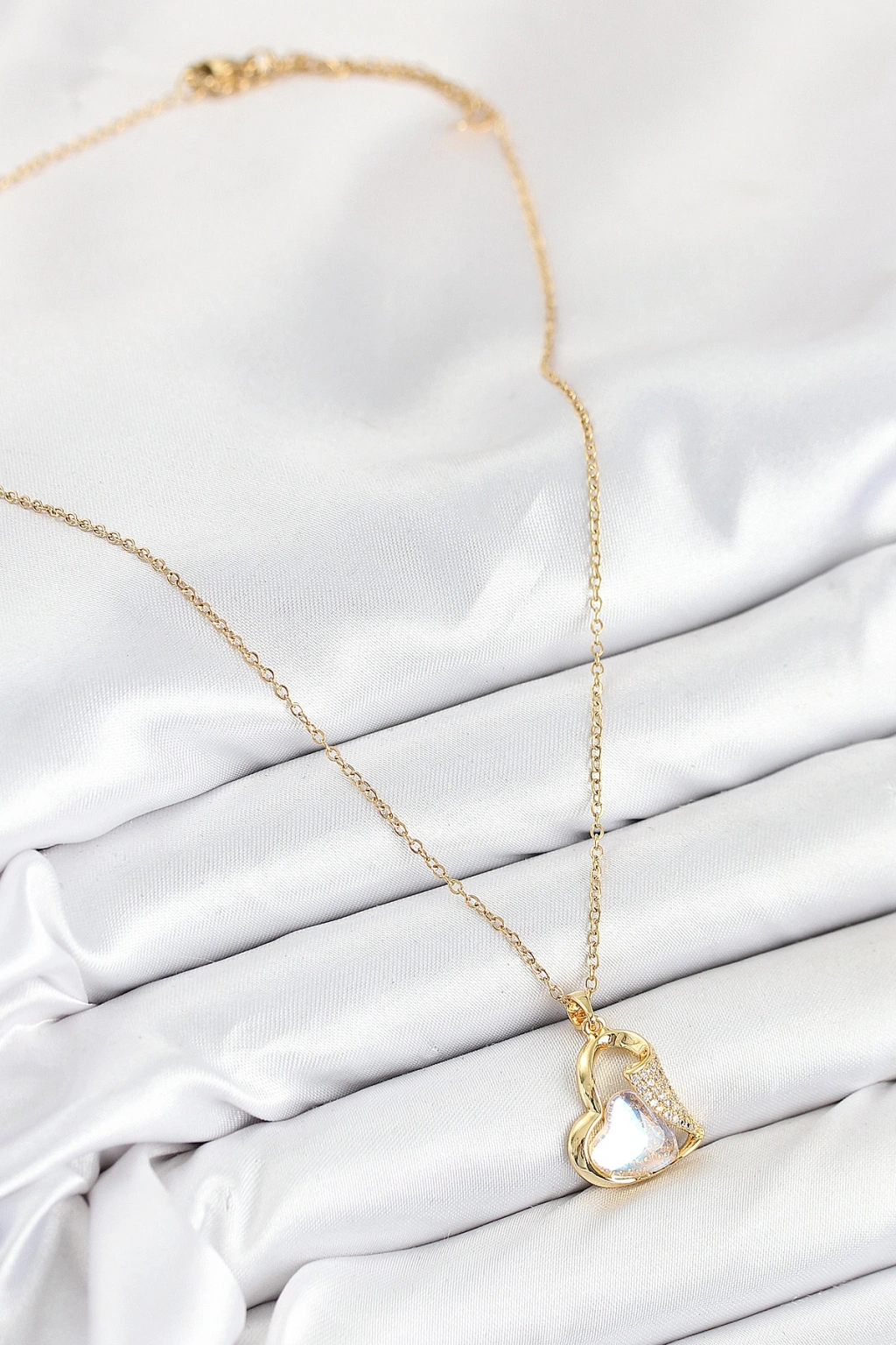 Erb Kalp Detaylı Gold Renk Pirinç Kadın Kolye