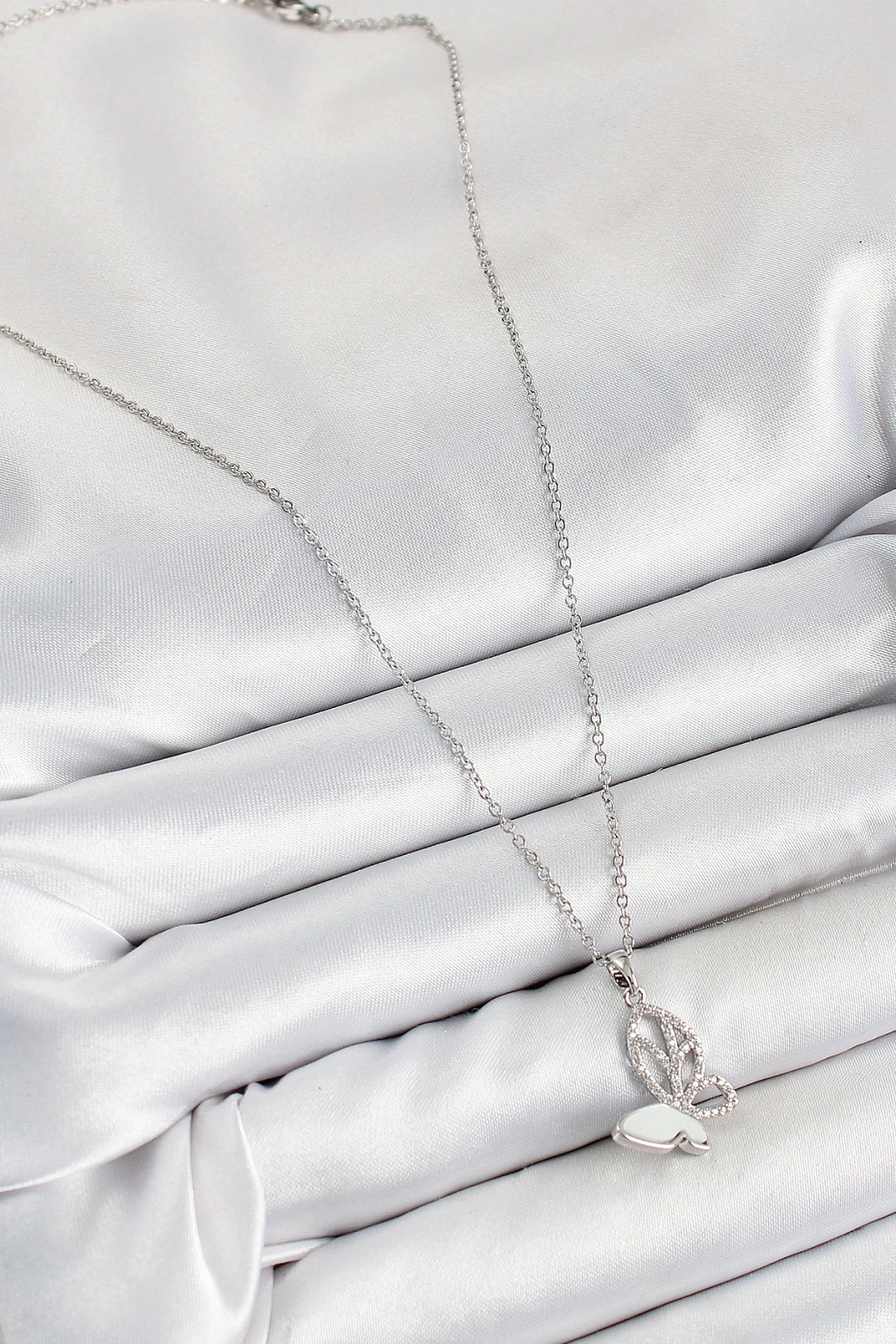 Erb 316L Çelik Zirkon Taşlı Kelebek Model Gümüş Renk Kadın Kolye