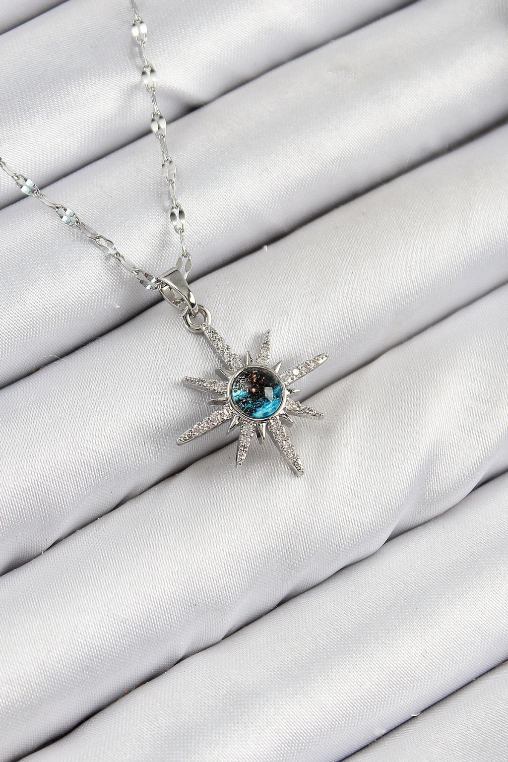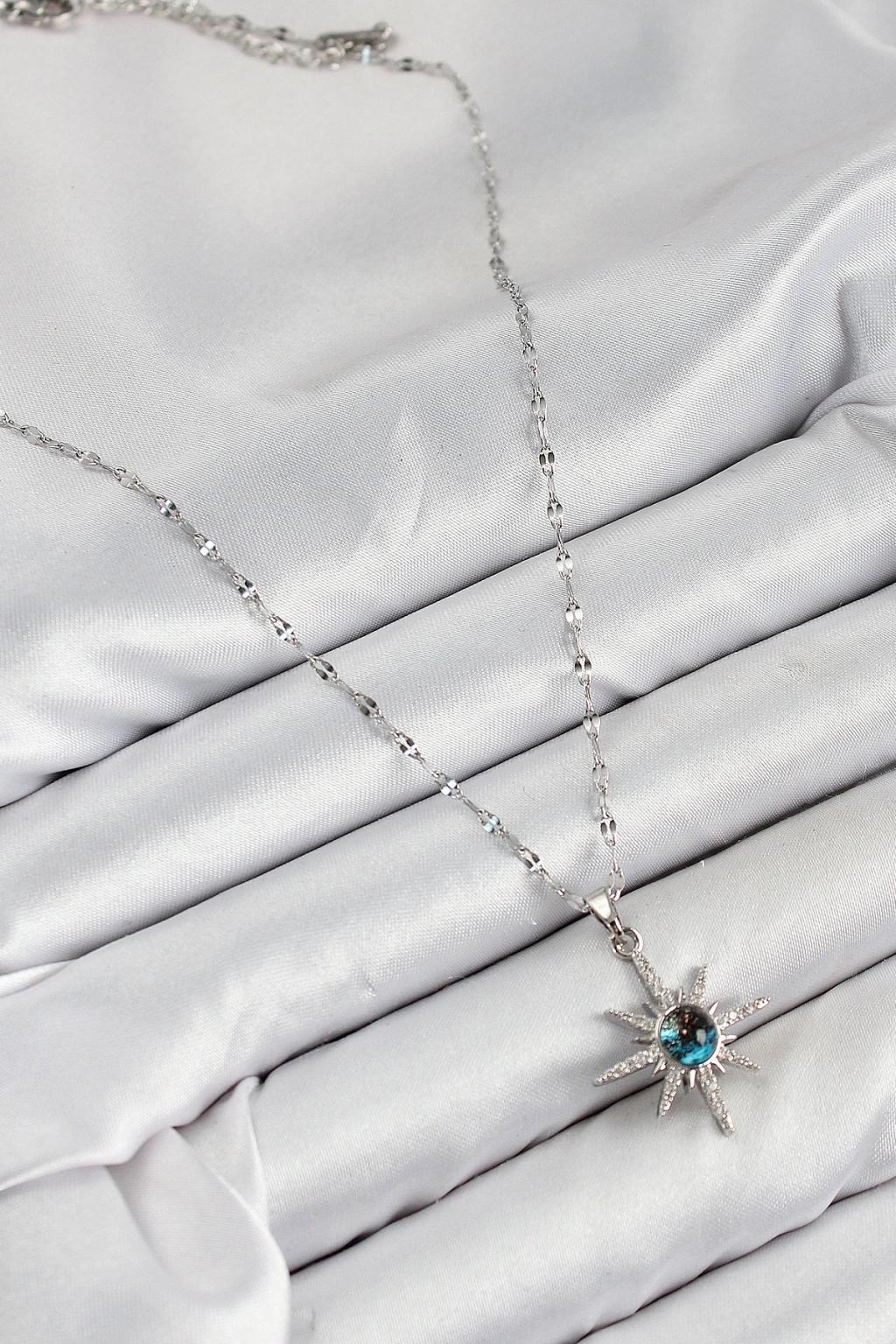 Erb 316L Çelik Zirkon Taşlı Kutup Yıldızı Model Gümüş Renk Kadın Kolye