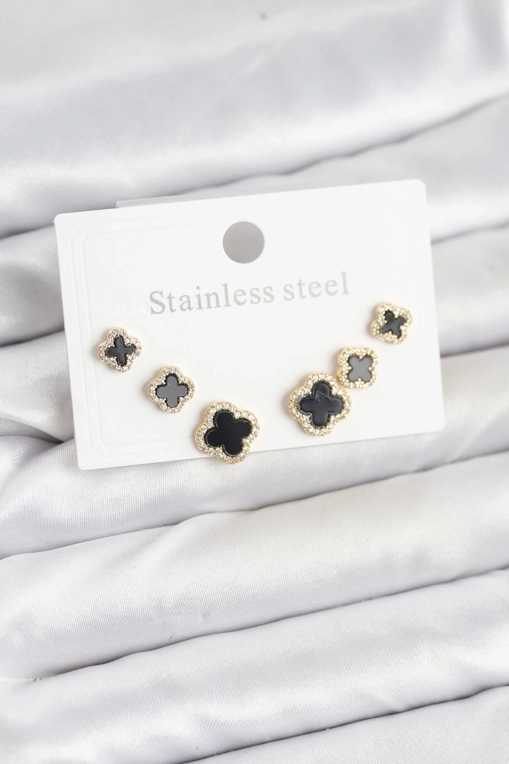 Erb 316L Çelik Zirkon Taşlı Yonca Model Kadın Küpe Seti