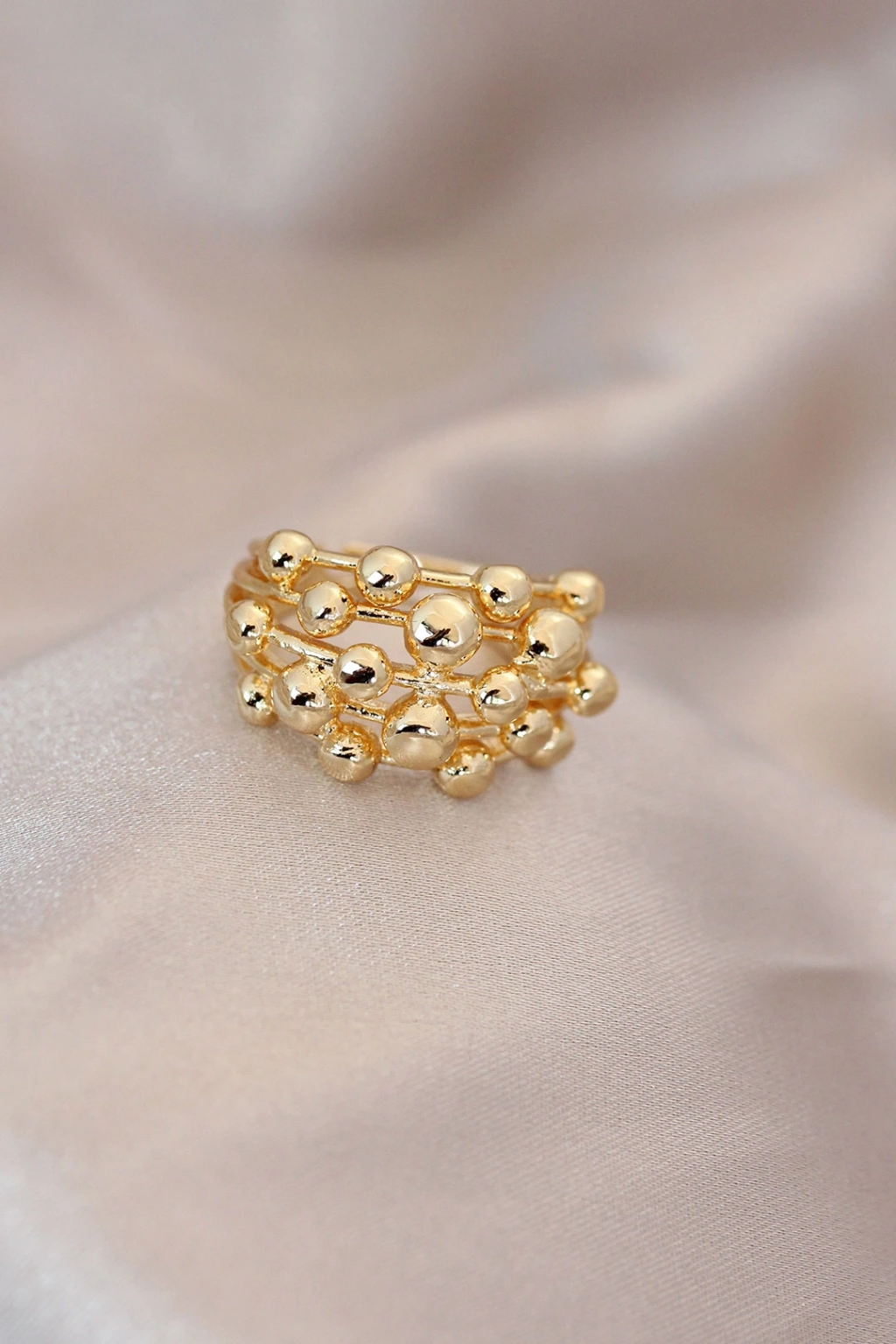 Erb Ayarlamalı Gold Renk Metal Bombeli Boluncuk Model Yüzük
