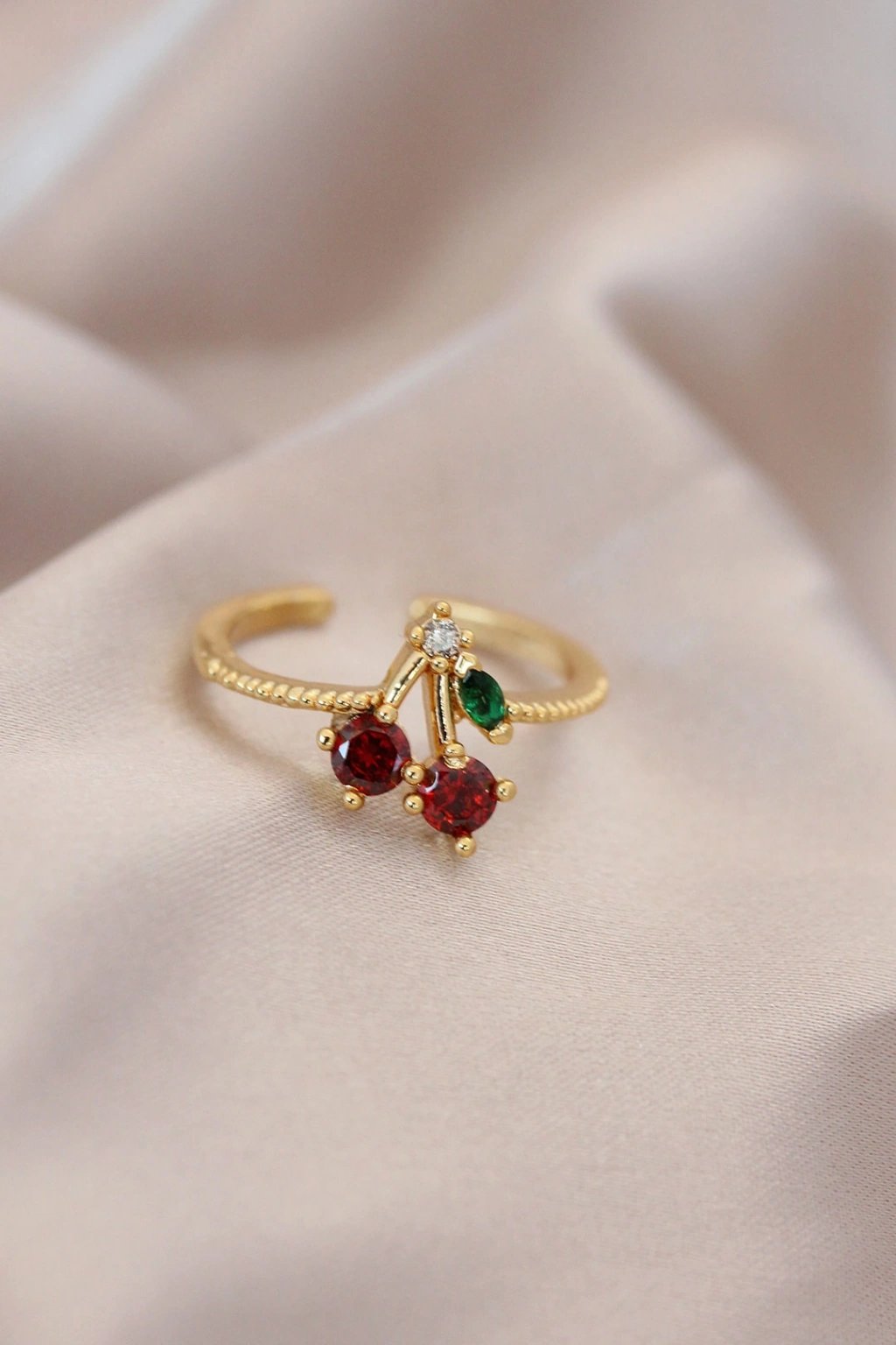 Erb Ayarlamalı Gold Renk Metal Renkli Zirkon Taşlı Kiraz Yüzük