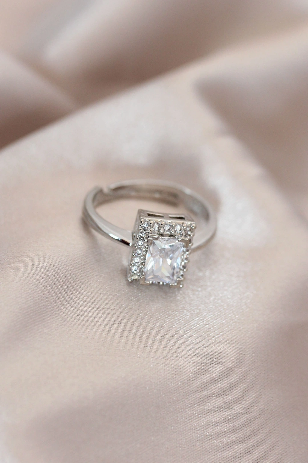 Erb Ayarlamalı Silver Renk Metal Zirkon Ve Kristal Taşlı Dikdörtgen Model Yüzük