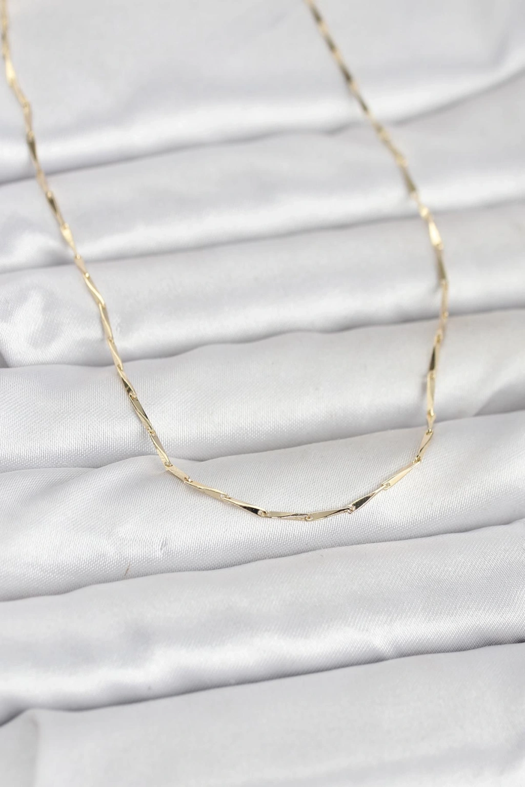 Erb CM 14K Gold Renk Çubuk Kesme Zincir Model 60 Cm Kadın Kolye