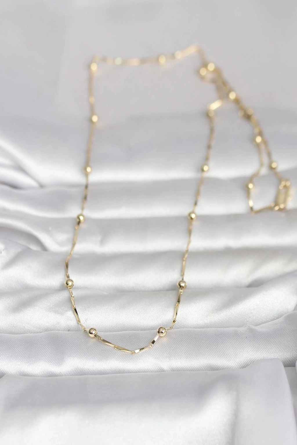 Erb CM 14K Gold Renk Kesme Çubuk Zincir Topçuklu Model 60 Cm Kadın Kolye