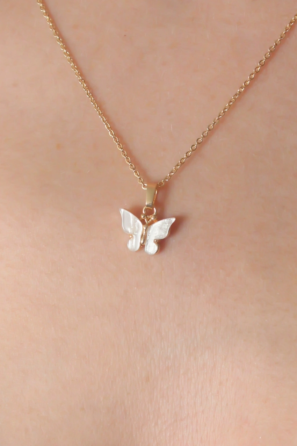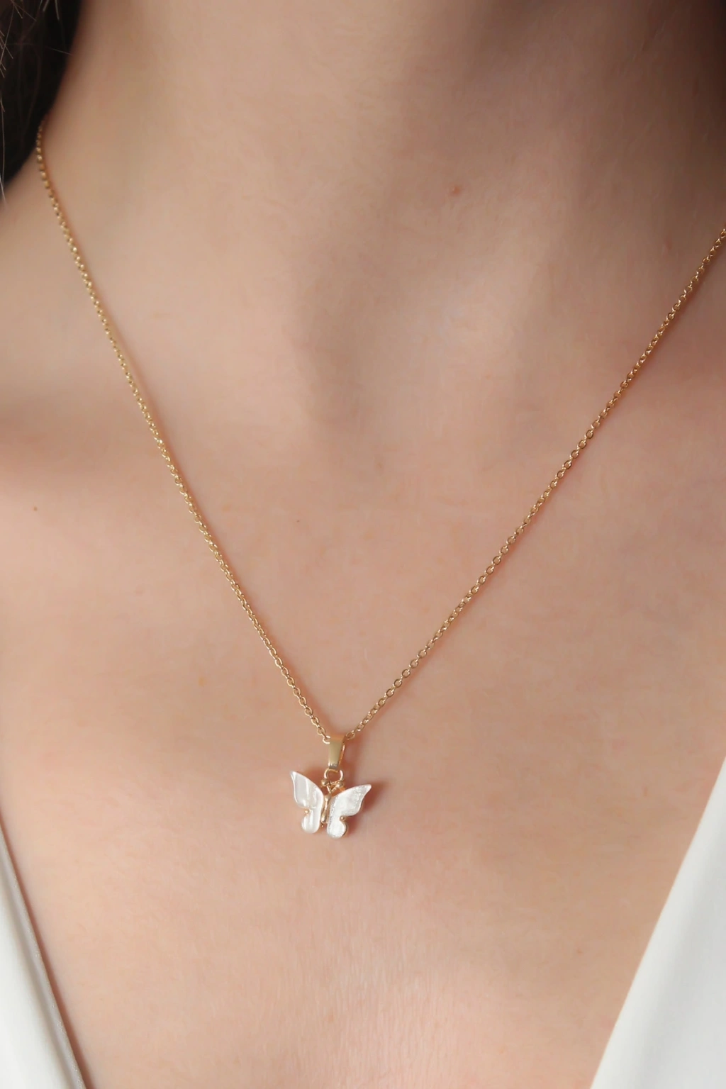 Erb Gold Beyaz Renk Kelebek Figür Kadın Kolye