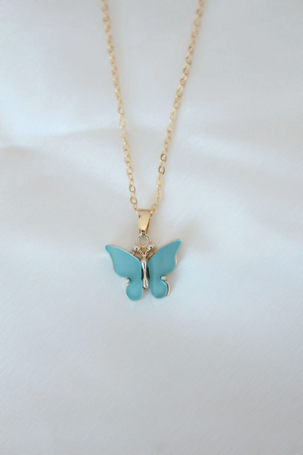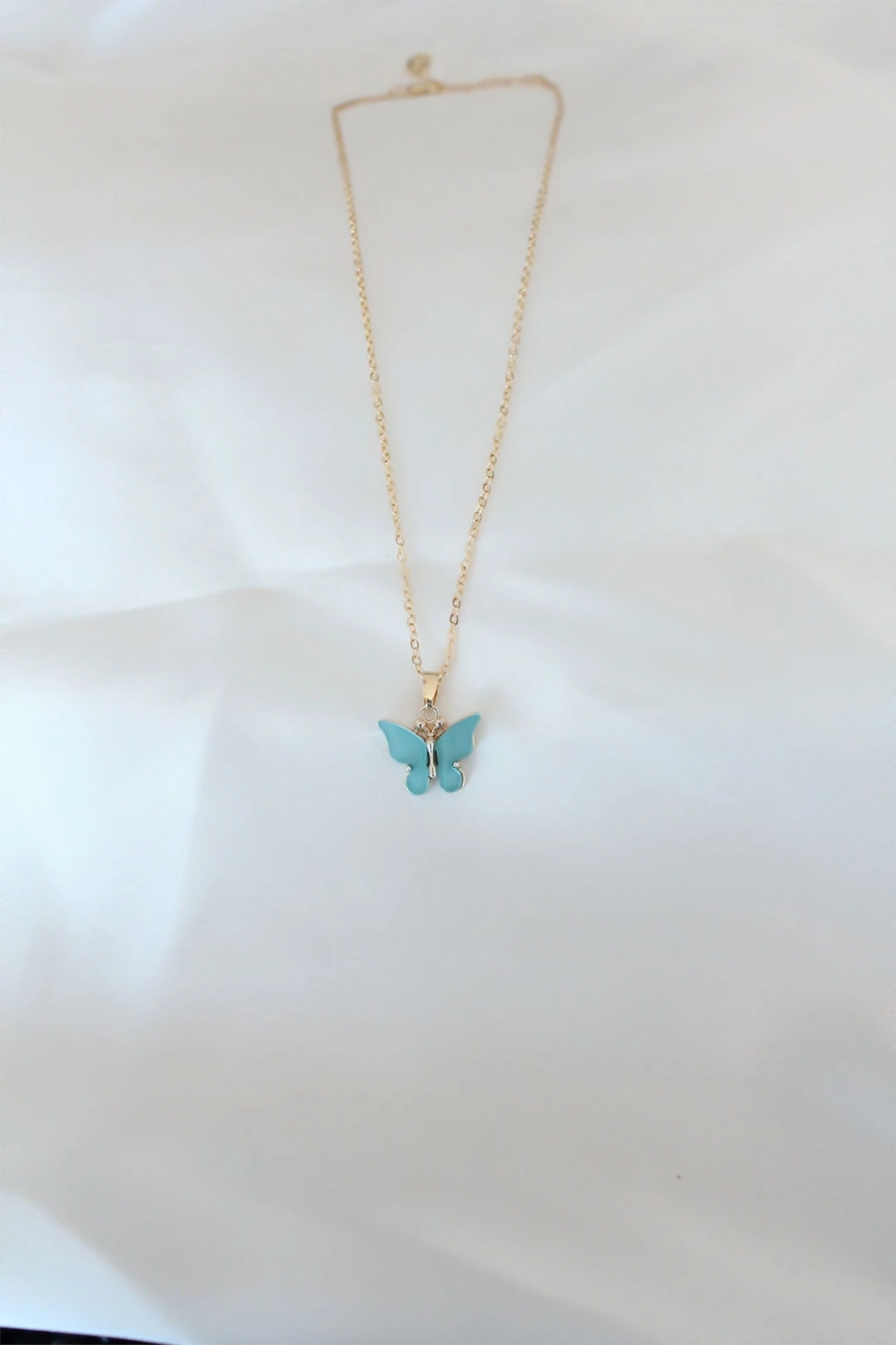 Erb Gold Kaplama Turkuaz Renk Sedefli Kelebek Kolye