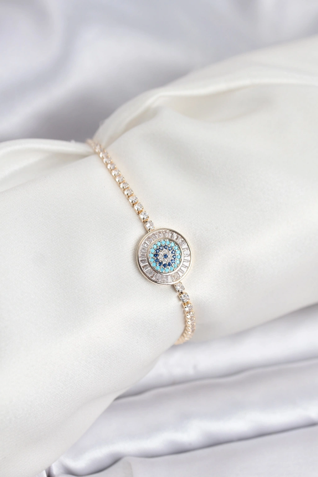 Erb Gold Renk Nazar Model Zirkon Taşlı Asansörlü Su Yolu Bileklik
