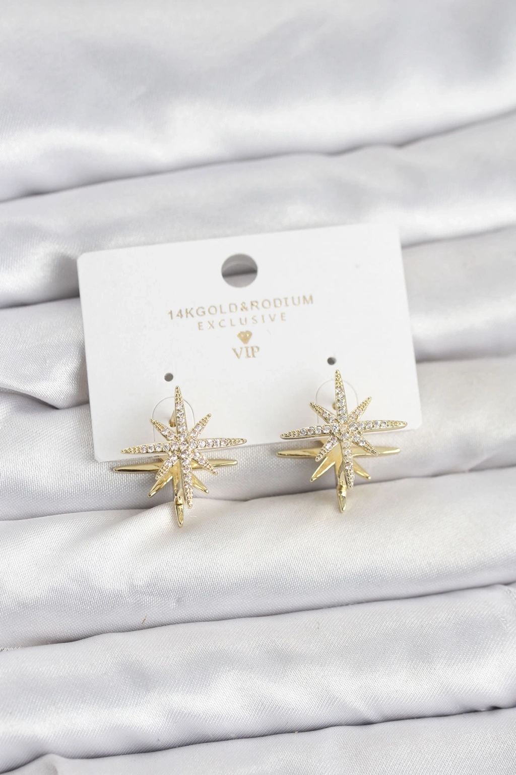Erb Gold Renk Pirinç Çift Taraflı Kutup Yıldızı Kadın Küpe