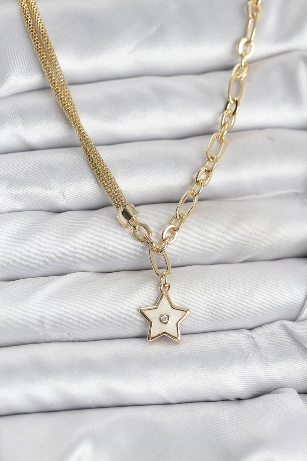 Erb Gold Renk Pirinç Yıldız Model Kadın Kolye