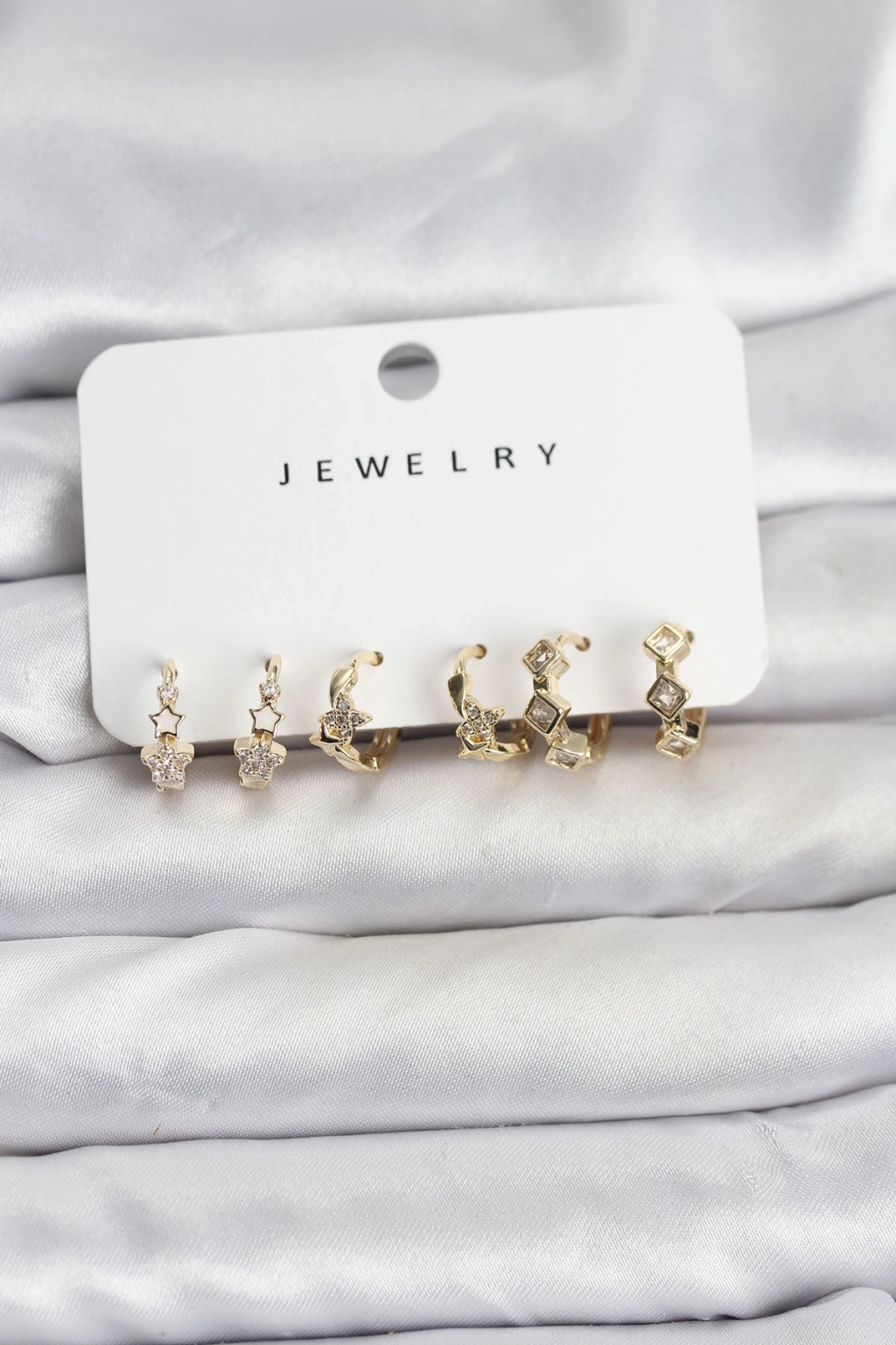 Erb Gold Renk Pirinç Yıldız Modelli Kadın Küpe Seti