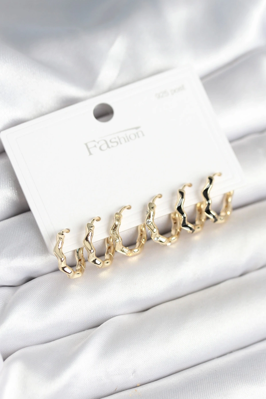 Erb Gold Renk Pirinç Zikzak Model 925 Ayar Gümüş Çivili Kadın Küpe Seti