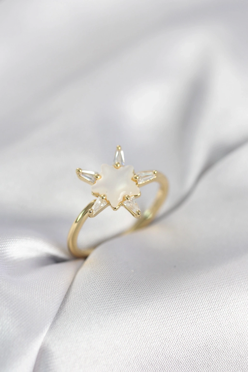 Erb Gold Renk Yıldız Model Sedefli Zirkon Taşlı Kadın Yüzük