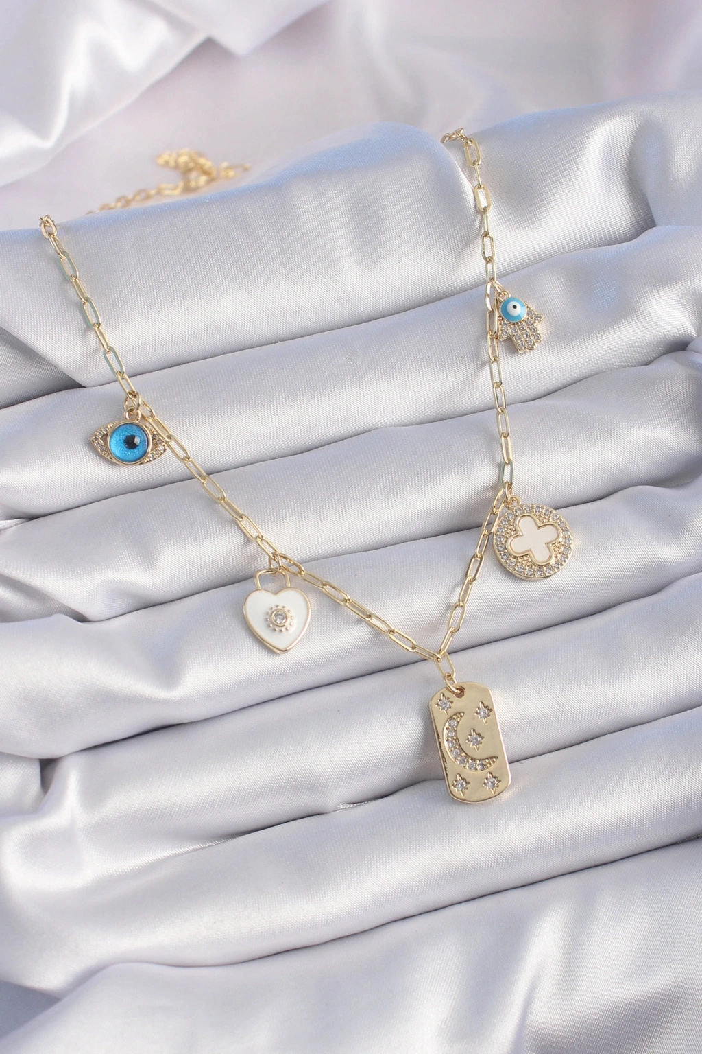 - Ürün materyali pirinçtir. - Ürün zincir uzunluğu 45cm dir. - Dikkatli kullanımda kararma, renk atma olmaz. - Ayrıca teninizin bijuteri , kaplama ürünleri kullanmaya uygun olması gerekmektedir. (Bazı tenlerin karartma yaptığı unutulmamalıdır.)- Sağlıklı ve mutlu günlerde kullanmanız dileğiyle…