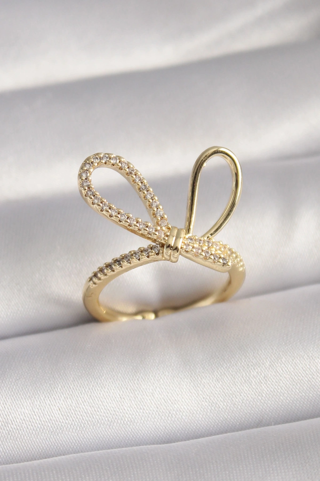 Erb Gold Renk Zirkon Taşlı Düğüm Model Kadın Yüzük