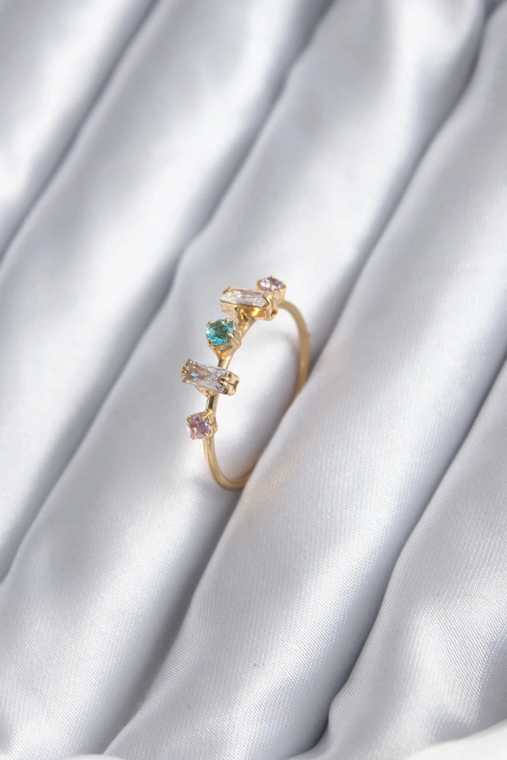 Erb Gold Renk Zirkon Taşlı Renkli Zirkon Taşlı Kadın Yüzük