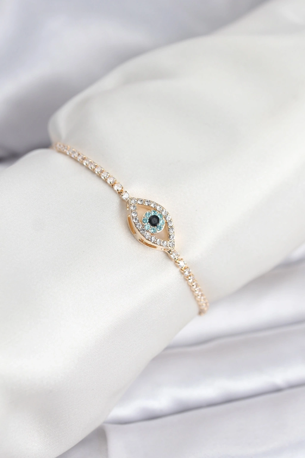 Erb Göz Model Zirkon Taşlı Gold Renk Asansörlü Su Yolu Bileklik
