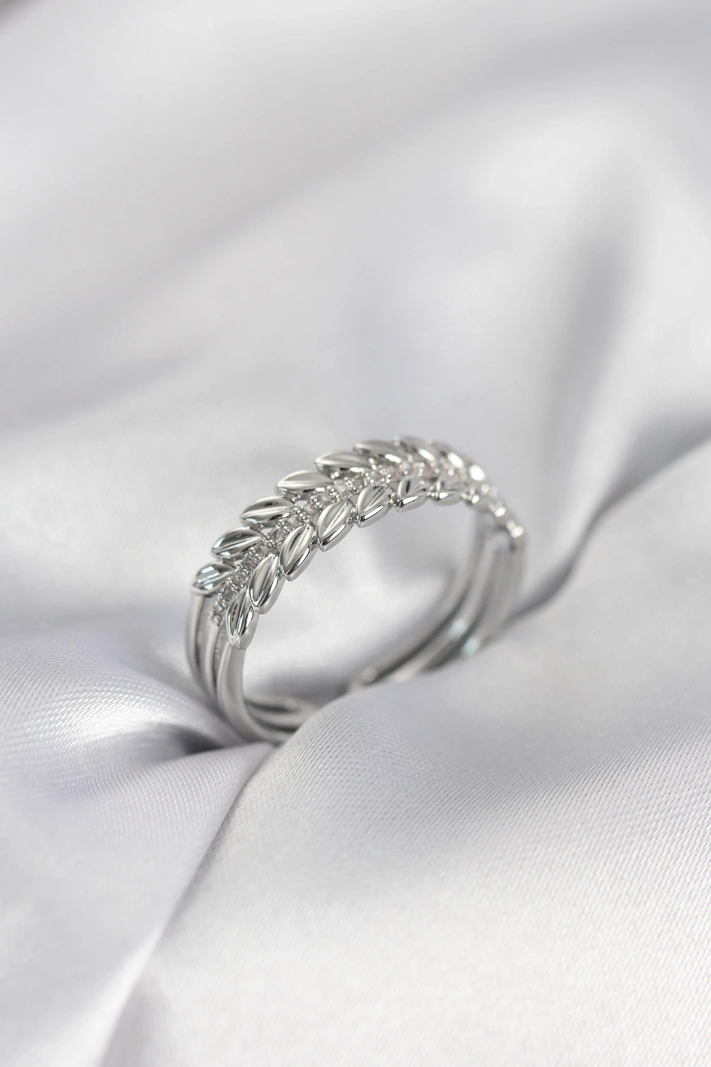 Erb Gümüş Renk Başak Model Zirkon Taşlı Kadın Yüzük