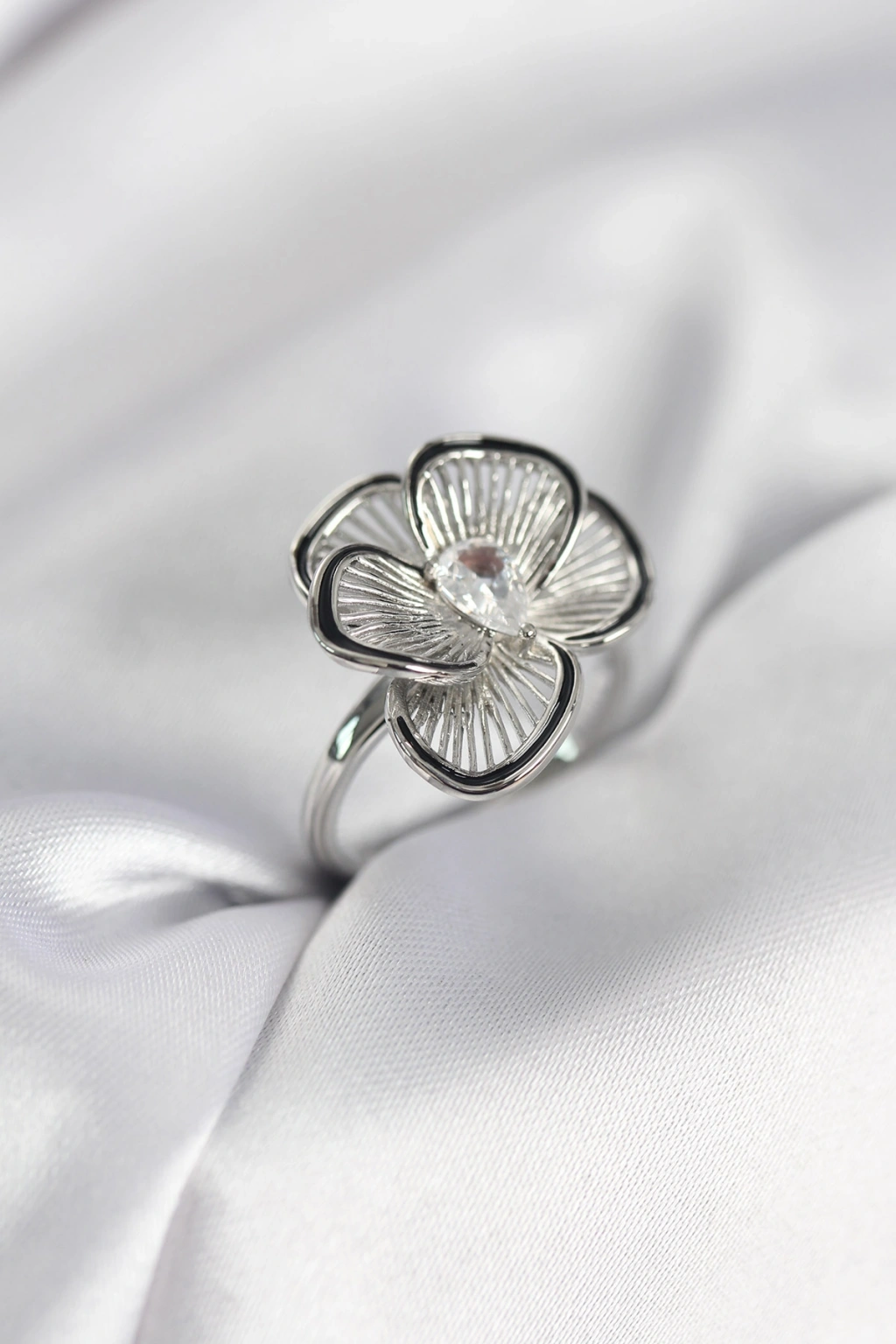Erb Gümüş Renk Çiçek Model Vintage Kadın Yüzük