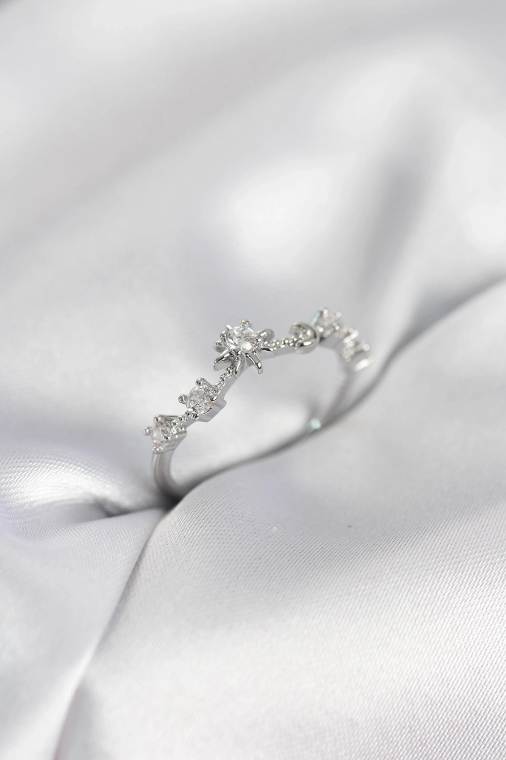 Erb Gümüş Renk Gece Temalı Zirkon Taşlı Kadın Yüzük
