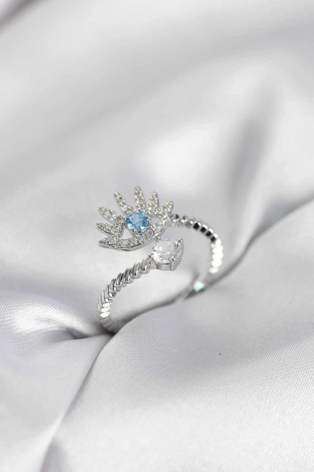 Erb Gümüş Renk Göz Model Zirkon Taşlı Kadın Yüzük