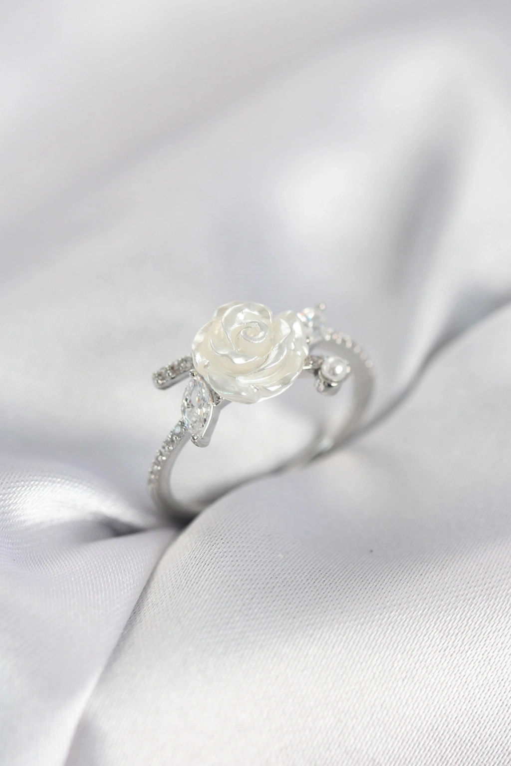 Erb Gümüş Renk Gül Model Zirkon Taşlı Kadın Yüzük