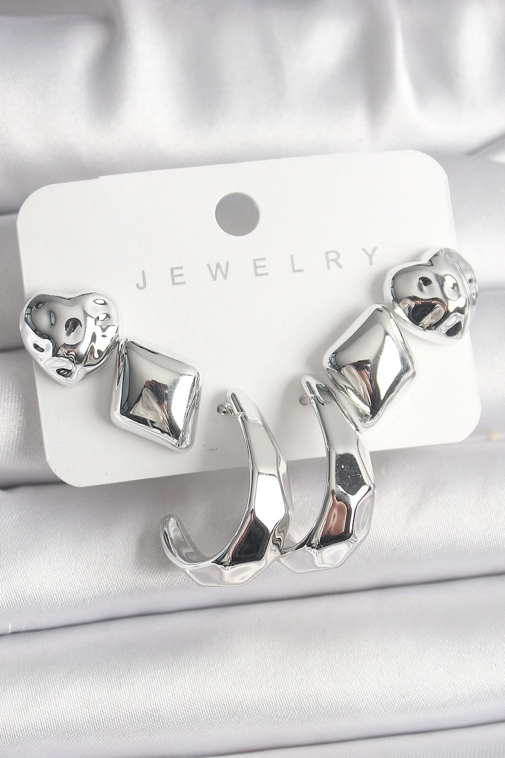 Erb Gümüş Renk Kalp Halka Figür CCB Plastik Kadın Küpe Seti