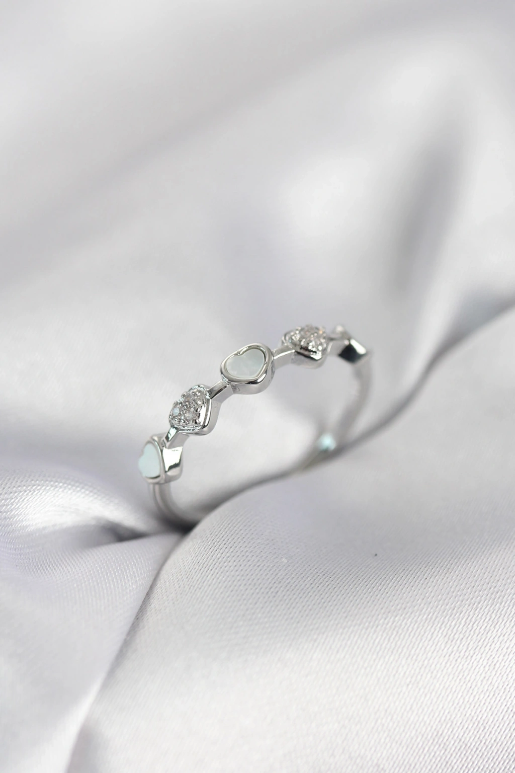 Erb Gümüş Renk Minimal Kalp Model Zirkon Taşlı Pirinç Kadın Yüzük