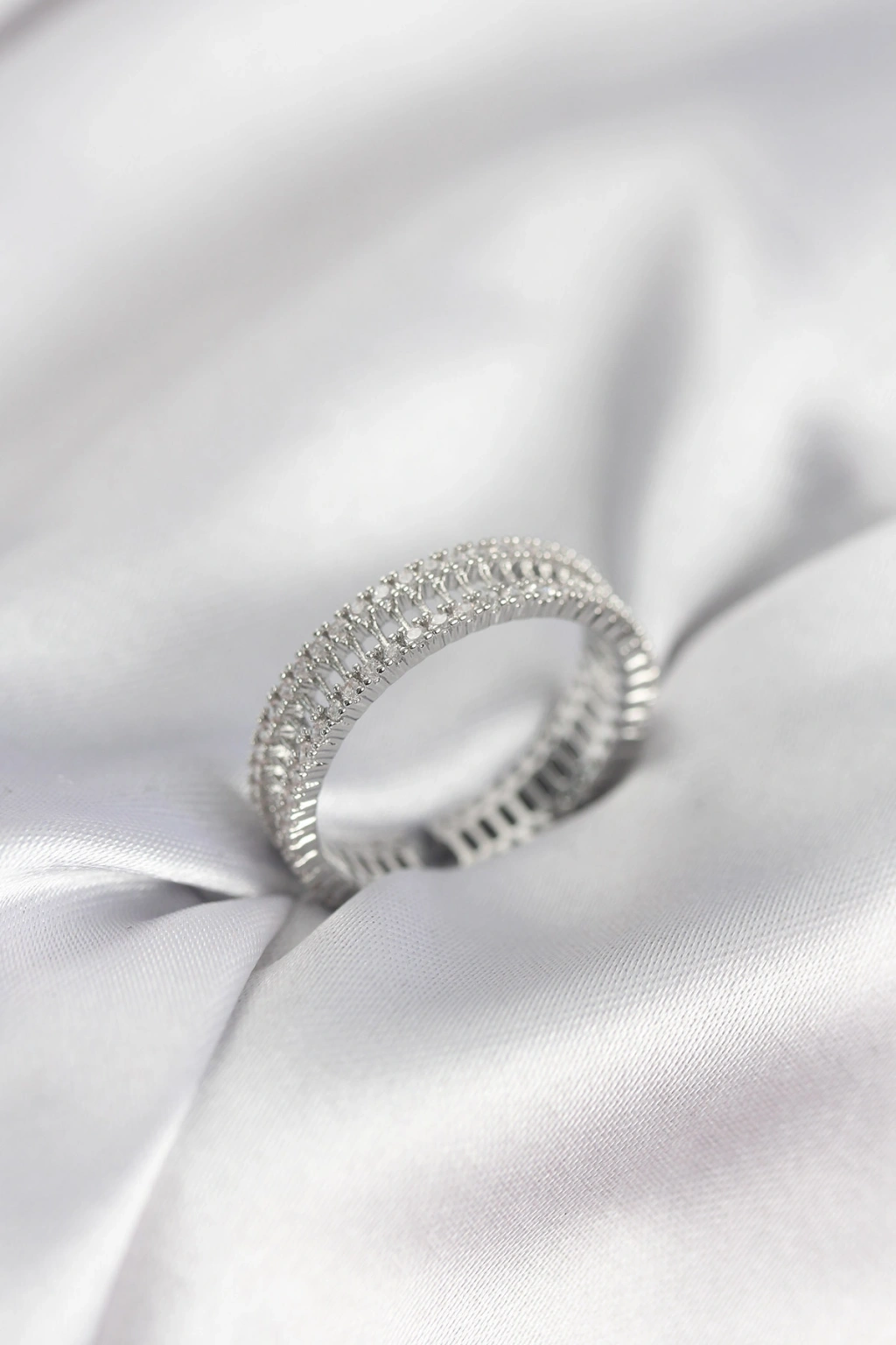 Erb Gümüş Renk Minimal Zirkon Taşlı Kadın Yüzük