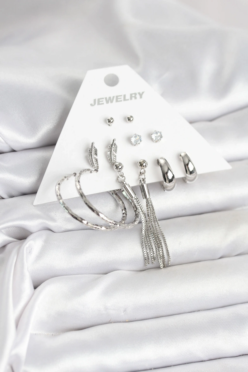 Erb Gümüş Renk Pirinç 6 Çiftli Kadın Küpe Seti