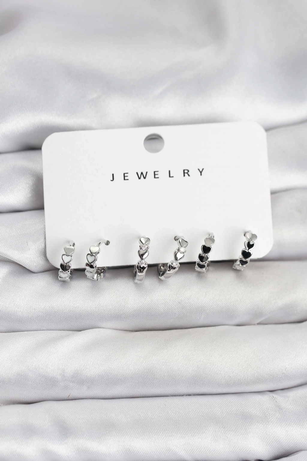 Erb Gümüş Renk Pirinç Minimal Kalp Detaylı Kadın Küpe Seti