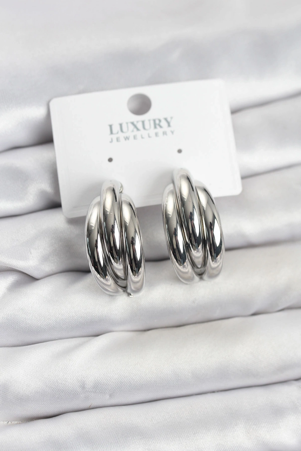 Erb Gümüş Renk Pirinç Yarım Halka Model Kadın Küpe