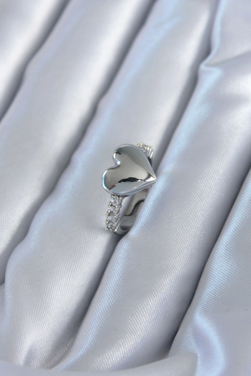 Erb Gümüş Renk Pirinç Zirkon Taşlı Kalp Model Kadın Yüzük