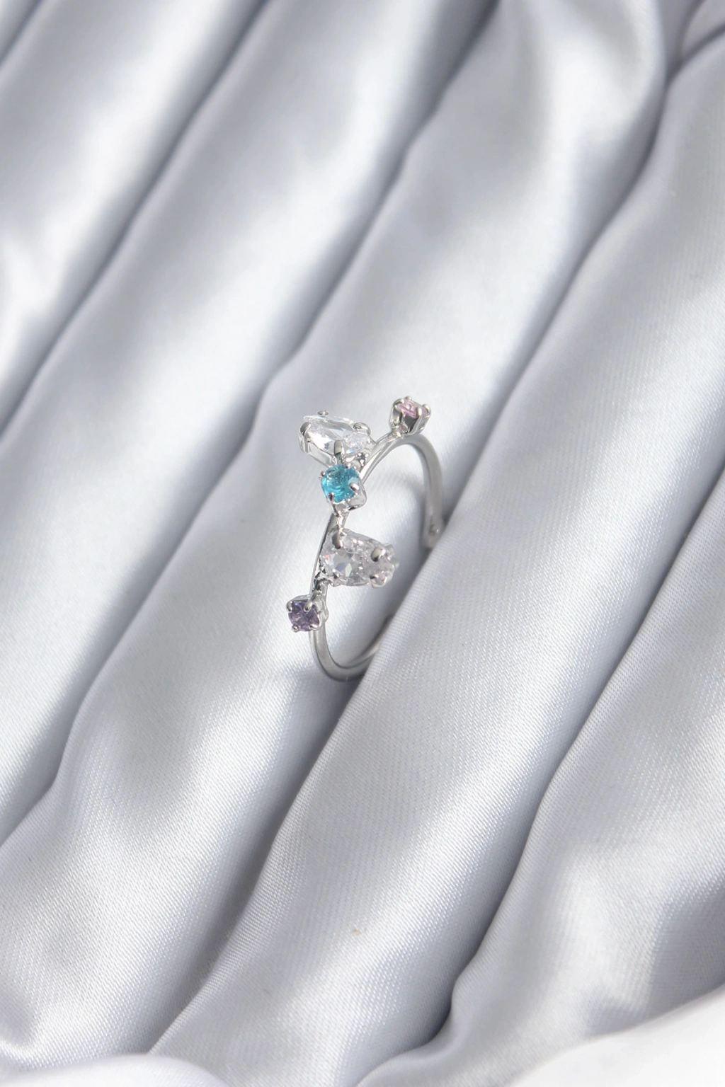 Erb Gümüş Renk Renkli Zirkon Taşlı Kadın Yüzük