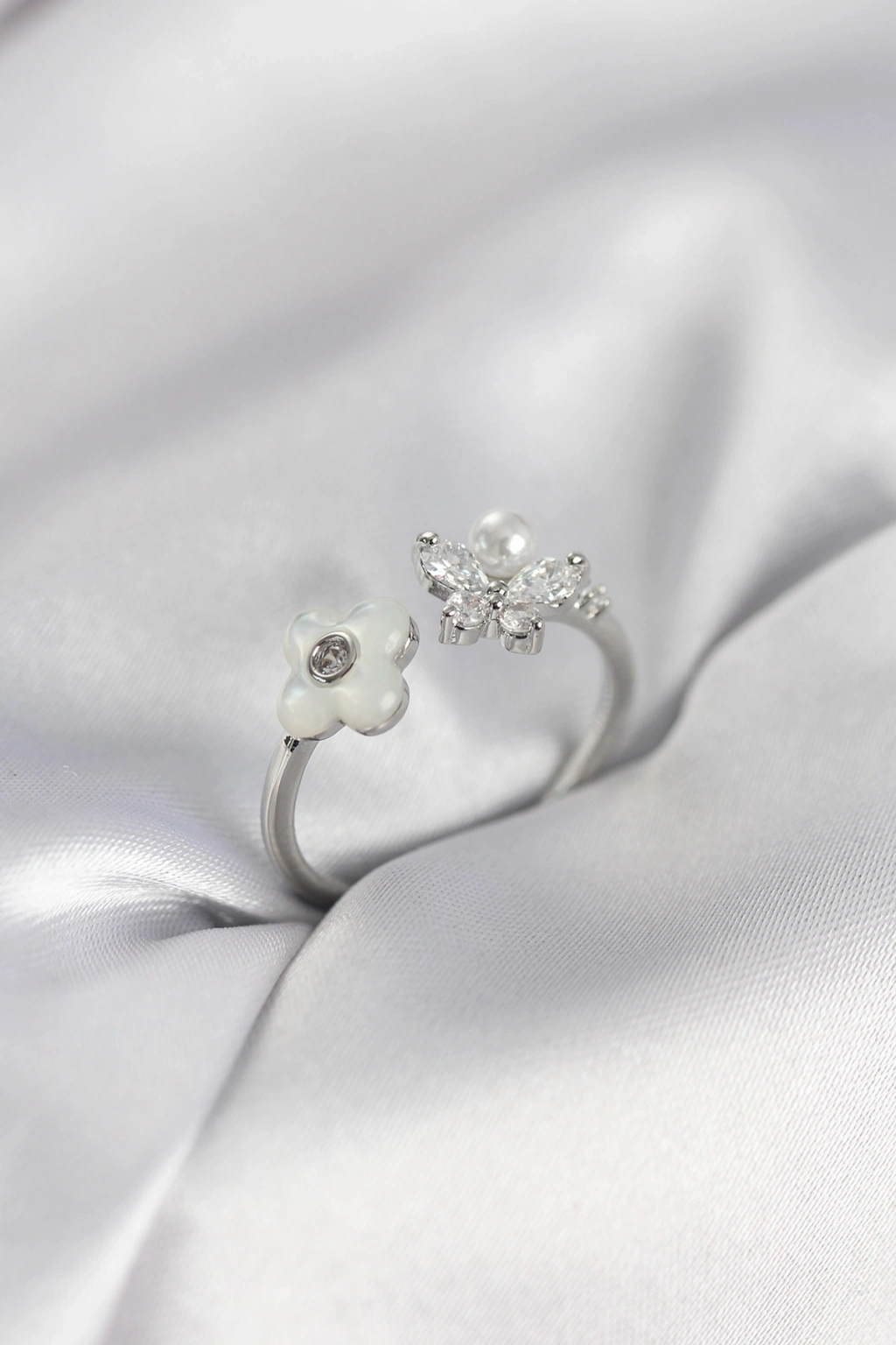 Erb Gümüş Renk Sedefli Çiçek Model Kadın Yüzük