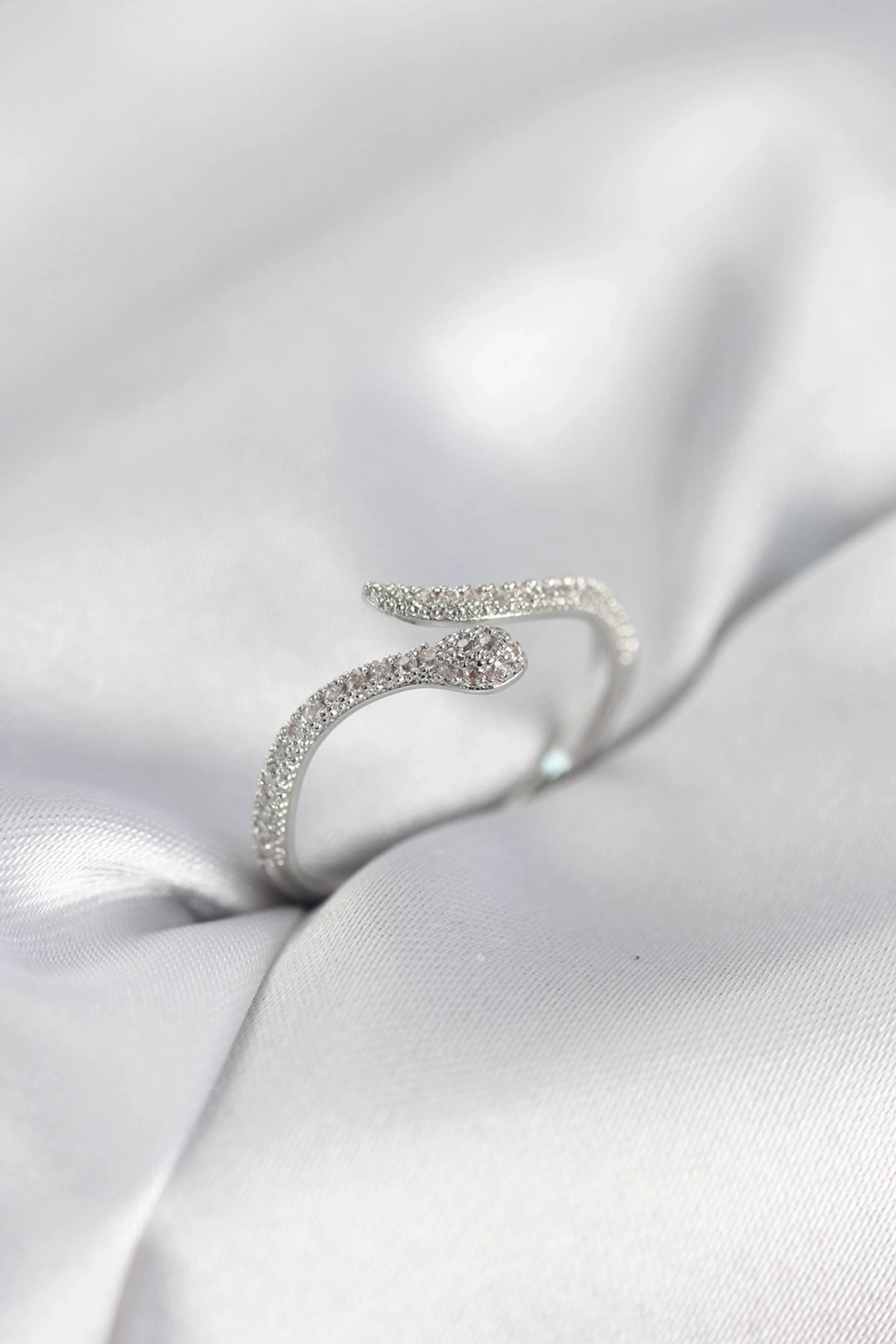 Erb Gümüş Renk Yılan Model Zirkon Taşlı Kadın Yüzük