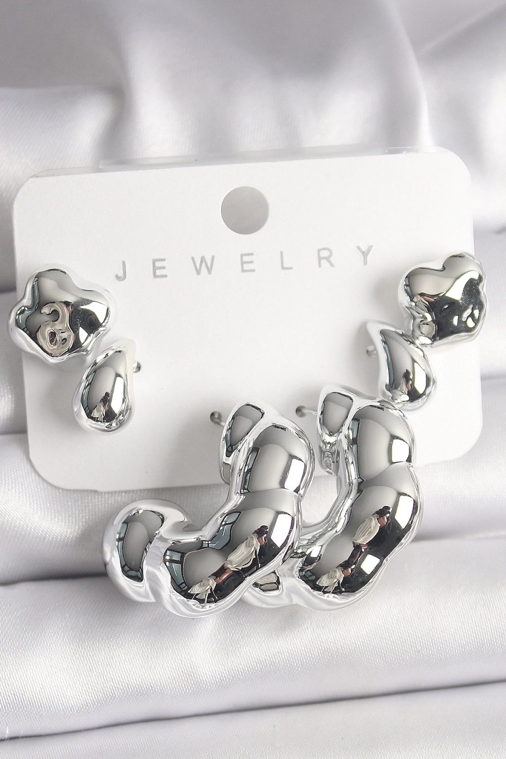 Erb Gümüş Renk Yonca Damla Halka Model CCB Plastik Kadın Küpe Seti